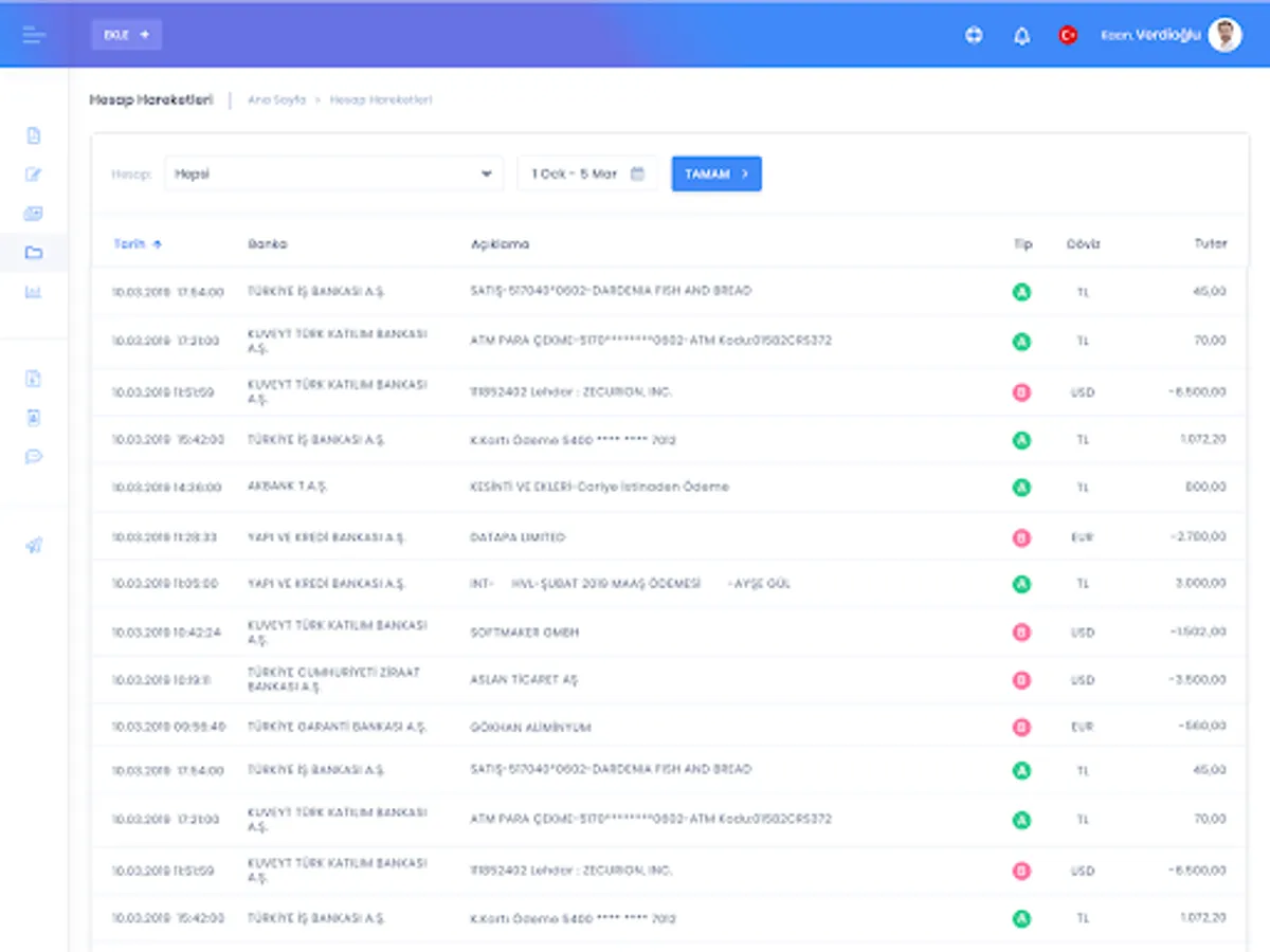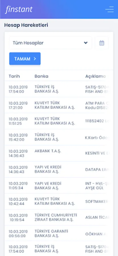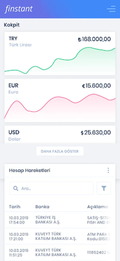 Fistant allows you to report and view your balance, account and POS transactions in all banks from a single application.