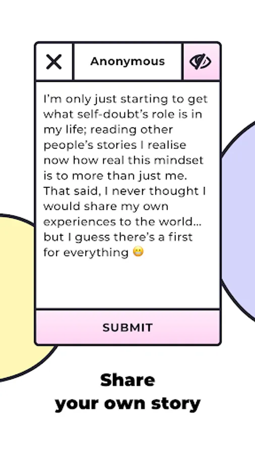 By providing an online environment free from judgement, Hi connects people with stories to tell and experiences to share, all centred around the central topic of self-doubt.