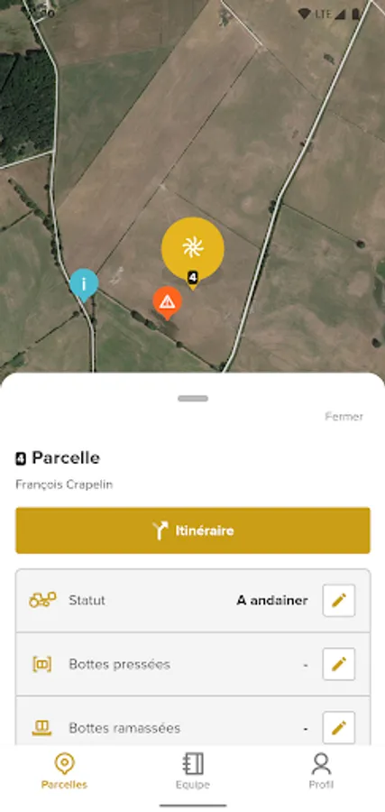 From the mobile application, you can launch a route (created with the web application) in your GPS application to access a field without making mistakes. You have access to the directory of drivers and can contact them directly (sending an SMS or calling).