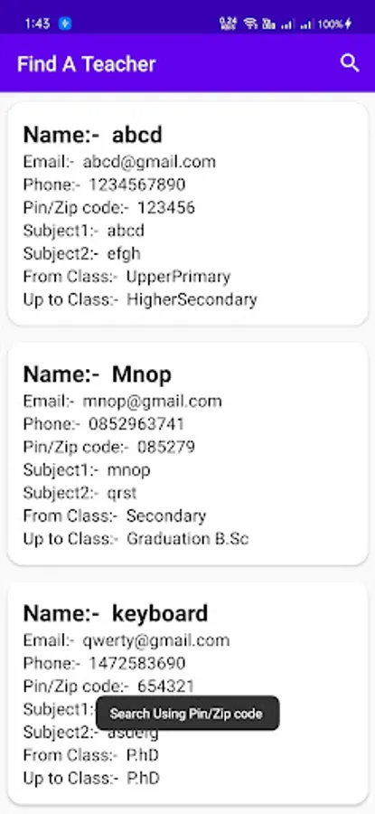 Hello Users don't ask pople just Tap it then you will find teacher as required. You can find a teacher in your required subjects in required field. Respective Teachers will register themselves with the data by which you can contact them easily.Hope you will like this application.