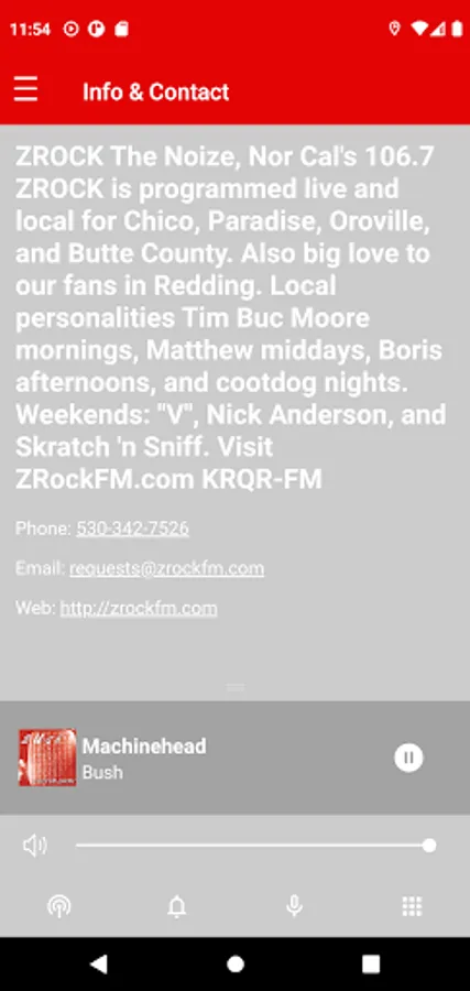 ZROCK The Noize, Nor Cal's 106.7 ZROCK is programmed live and local for Chico, Paradise, Oroville, and Butte County. Also big love to our fans in Redding. Local personalities Tim Buc Moore mornings, Matthew midday, “V” afternoons, and C-Dub nights. Weekends: "V", Nick Anderson, and Skratch 'n Sniff. Visit ZRockFM.com KRQR-FM