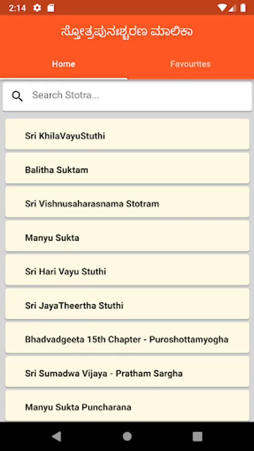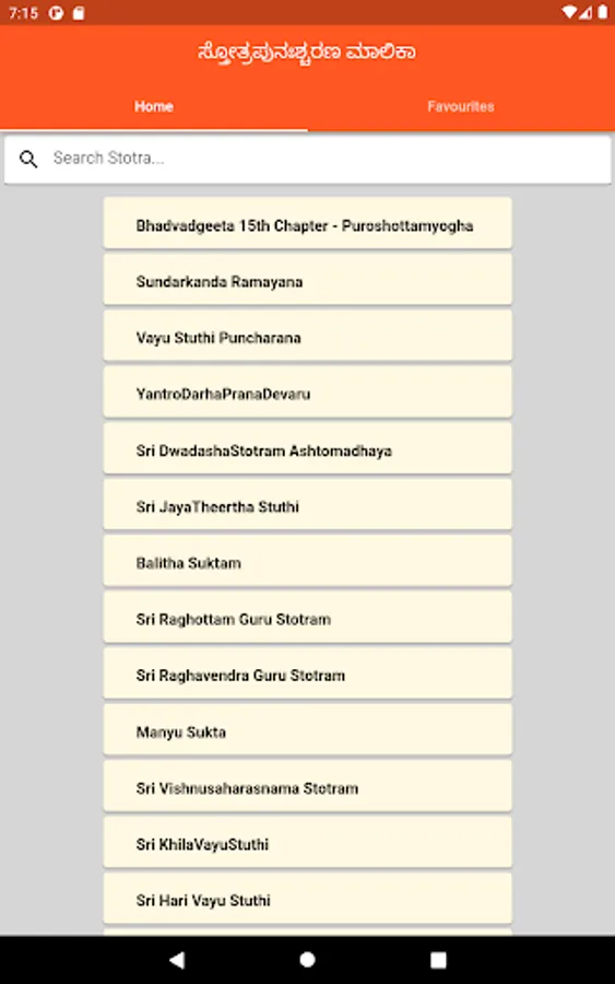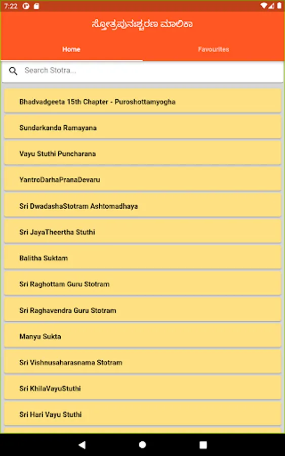 The SPM app also provides a search on the home page and views all the Stotras and Punacharans. this option available for the Favrioutes section also.