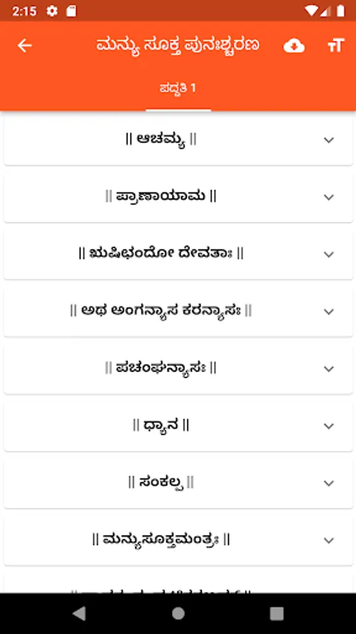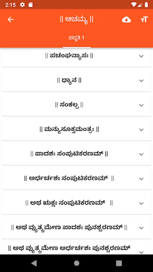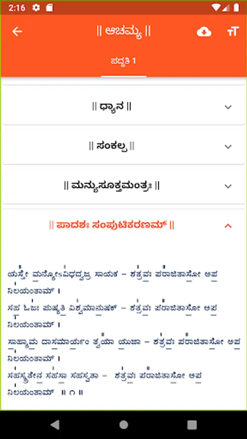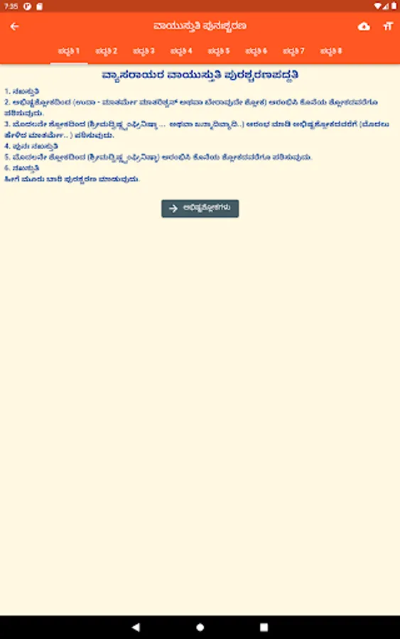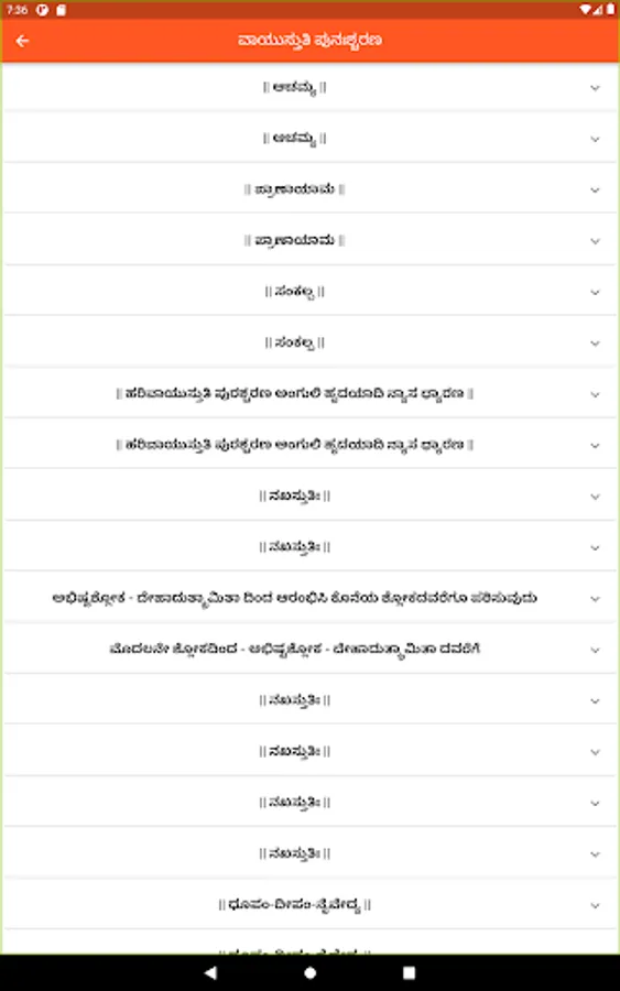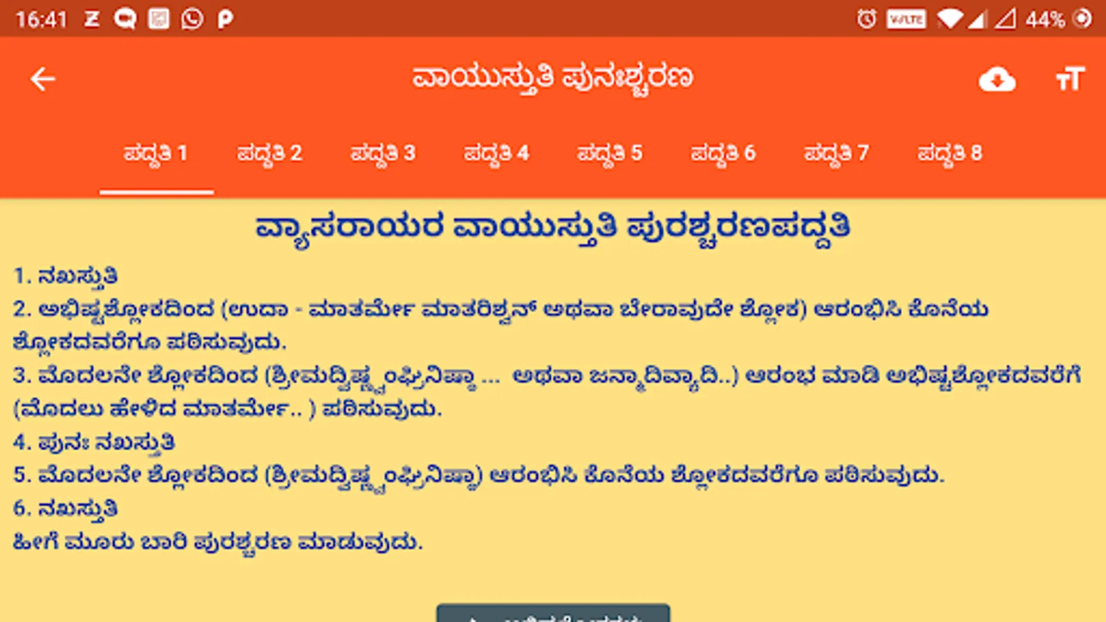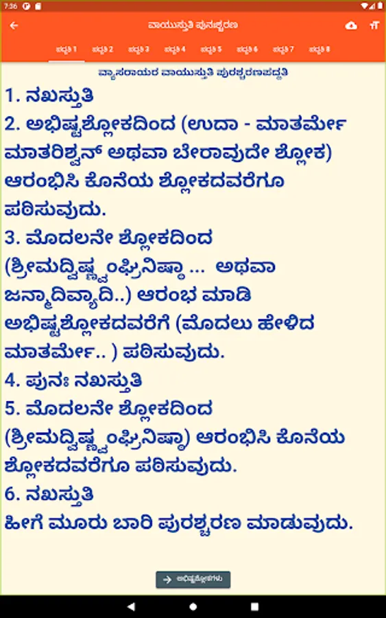 The Punacharanas like Manyusukta and vayustuthi can be viewed. The stotras are included like vishnusahasranama, vayustuthi, manyu sukta etc.