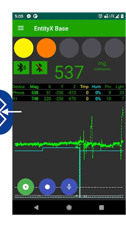 This app connects to the EntityX Base app via Bluetooth to transmit and record local data.