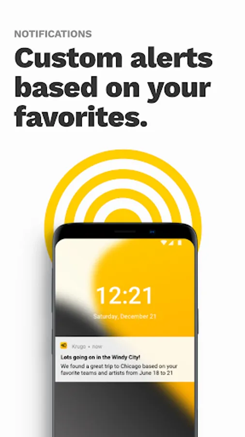 When you arrive in a new city, you can count on Krugo to let you know about the scheduled events you might be interested in. Plus, stay up to date with last-minute ticket deals and trip ideas built just for you.