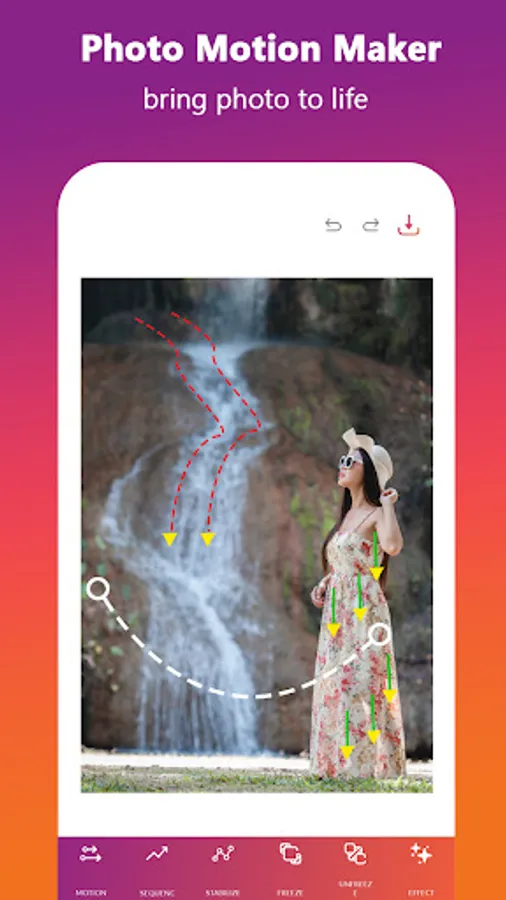 Are you looking for a Photo Editor that gives Life to your static or we say still images then this Photo Motion - Moving Picture or Photo Animator app is for you. This app creates amazing visual effects like Cinemagraph, double exposed gifs or magical moving portraits that convert a still picture to moving picture or amazing video by adding direction pointers. Also gives the Live Wallpaper (moving wallpaper) effect to pictures. This Photo Motion - Moving Picture or Photo Animator app converts your image into eye-catching animation using simple animation effects.