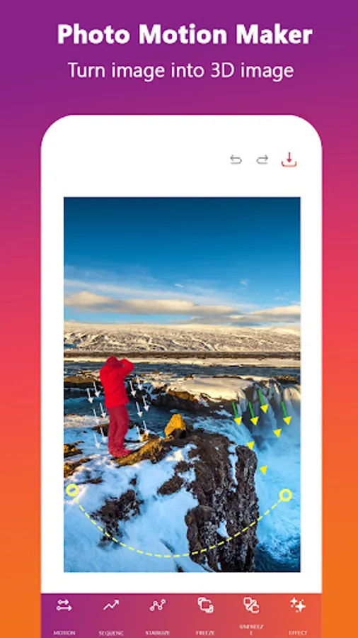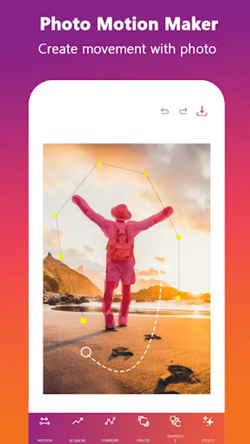 Photo Motion - Moving Picture or Photo Animator is a complete photo moving app for making short videos, moving photos and Animated GIF using still images. Set these moving pictures as background and personalize your home and lock screen. This is the best Animated video maker and image in motion app. You will have a lot of fun while using this app.
