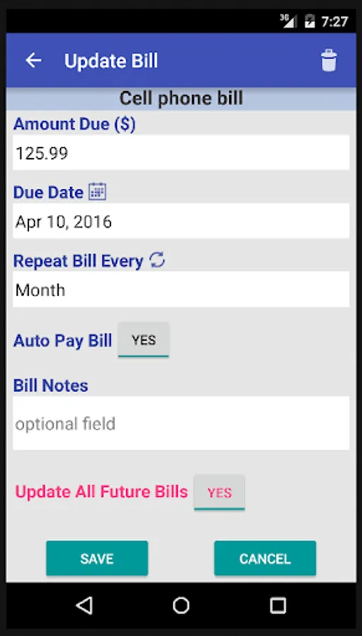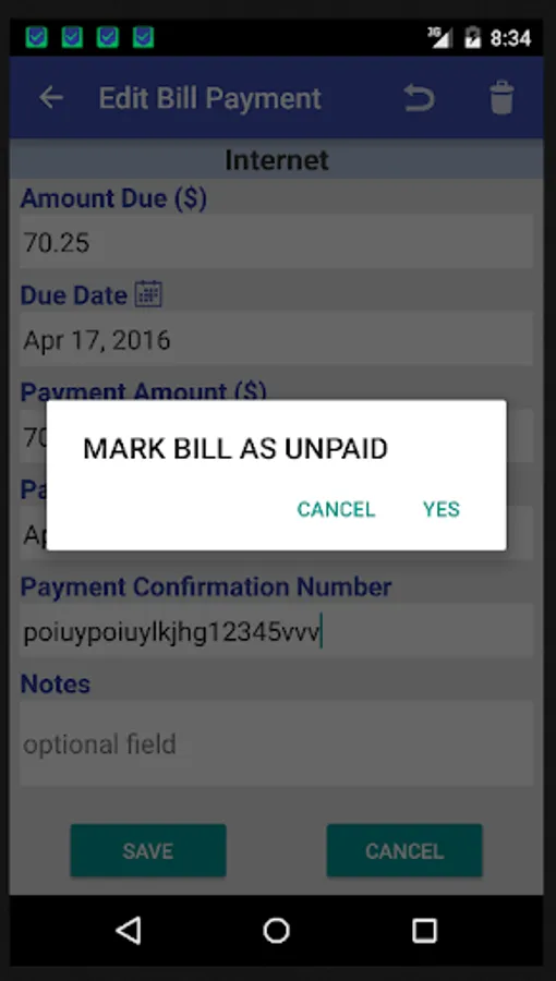 - Advanced bill editing capability lets you update selected bill and all future bills as well. If you accidentally mark bill as paid you can easily mark it as unpaid.