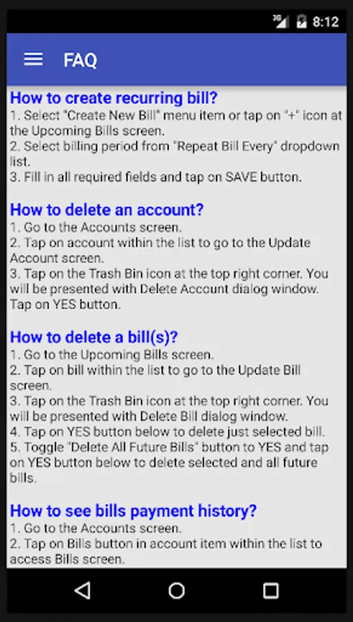 Please feel free to contact us at bills.reminder.dkllc@gmail.com for any feedback, questions and new features request.