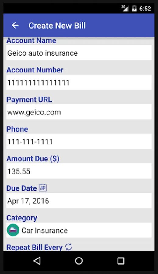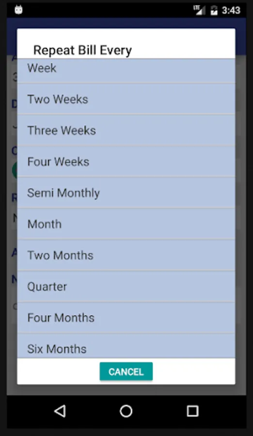 - Bills Reminder app allows you to create recurring bills with different billing periods (weekly, bi-weekly, semi-monthly, monthly, bi-monthly, quarterly etc.) and one time bills as well.