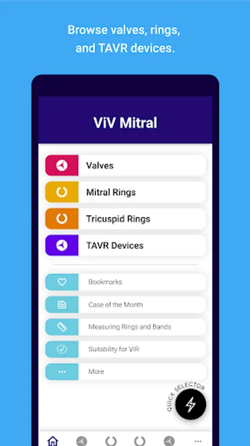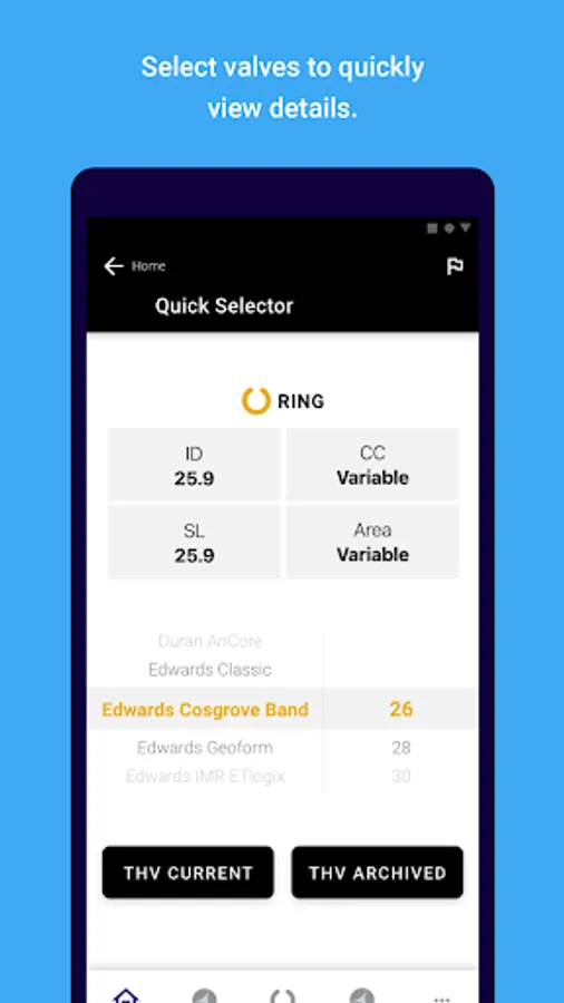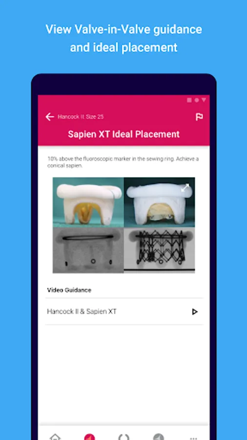 Valve in Valve Mitral app provides information specific for a clinical scenario, quickly and simply. This will help in the planning of and performing a mitral Valve in Valve or Valve in Ring case. The application navigates the user through important aspects of surgical mitral valves, mitral rings and TAVR valve design, which are vital for a successful Valve in Valve or ring procedure. The app logically steps through the possible combinations to give the user specific information needed to perform the procedure.