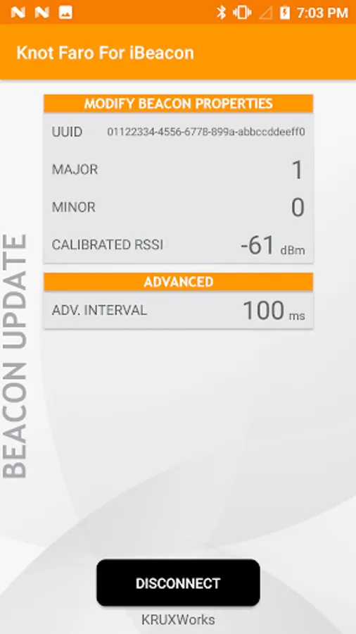 KNOT Faro for iBeacon is an application that allows users to configure iBeacon parameters of KNOT Faro device.