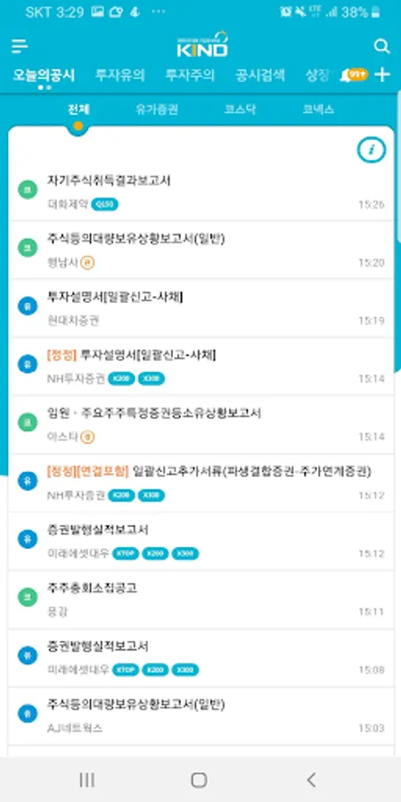 The Korea Exchange is a mobile electronic disclosure of the Korea Exchange, which provides comprehensive information on the investment information of listed corporations centered on the screen with high frequency of investor use in the KIND PC version menu such as disclosure information, company details, listed corporation statistics and investment intentions. mKIND) app.