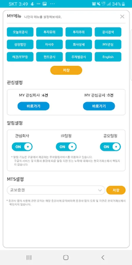 3. (MTS Connection) You can run the securities app specified by the user so that the user can be connected to the sale immediately after checking the company's stock price and disclosure information.