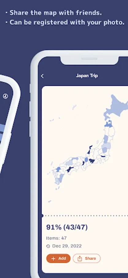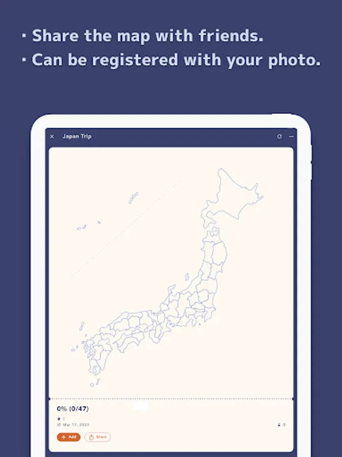 - You can fill in the map of Japan and the world by selecting and registering prefectures and countries/regions.