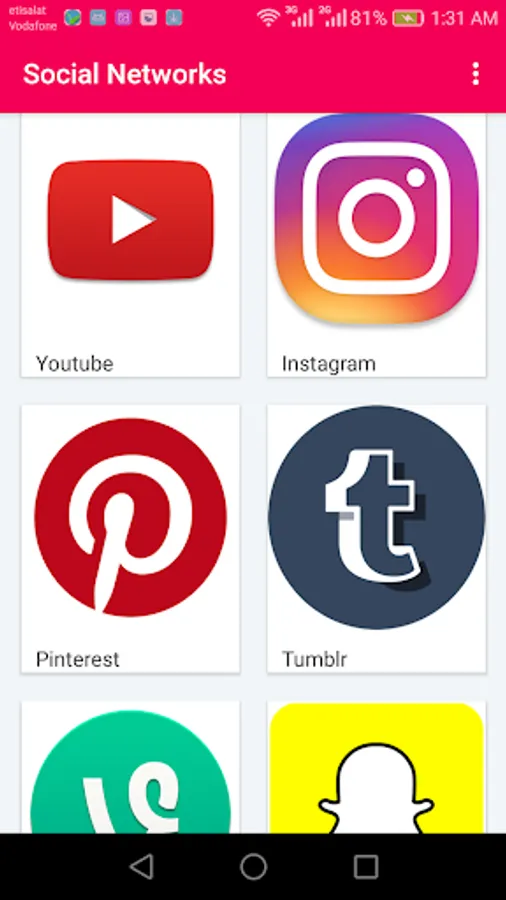 As its name suggests it contains all popular social networking sites and one can access his/her favorite social media such as Facebook, Twitter, Pinterest, Instagram etc. through this app.