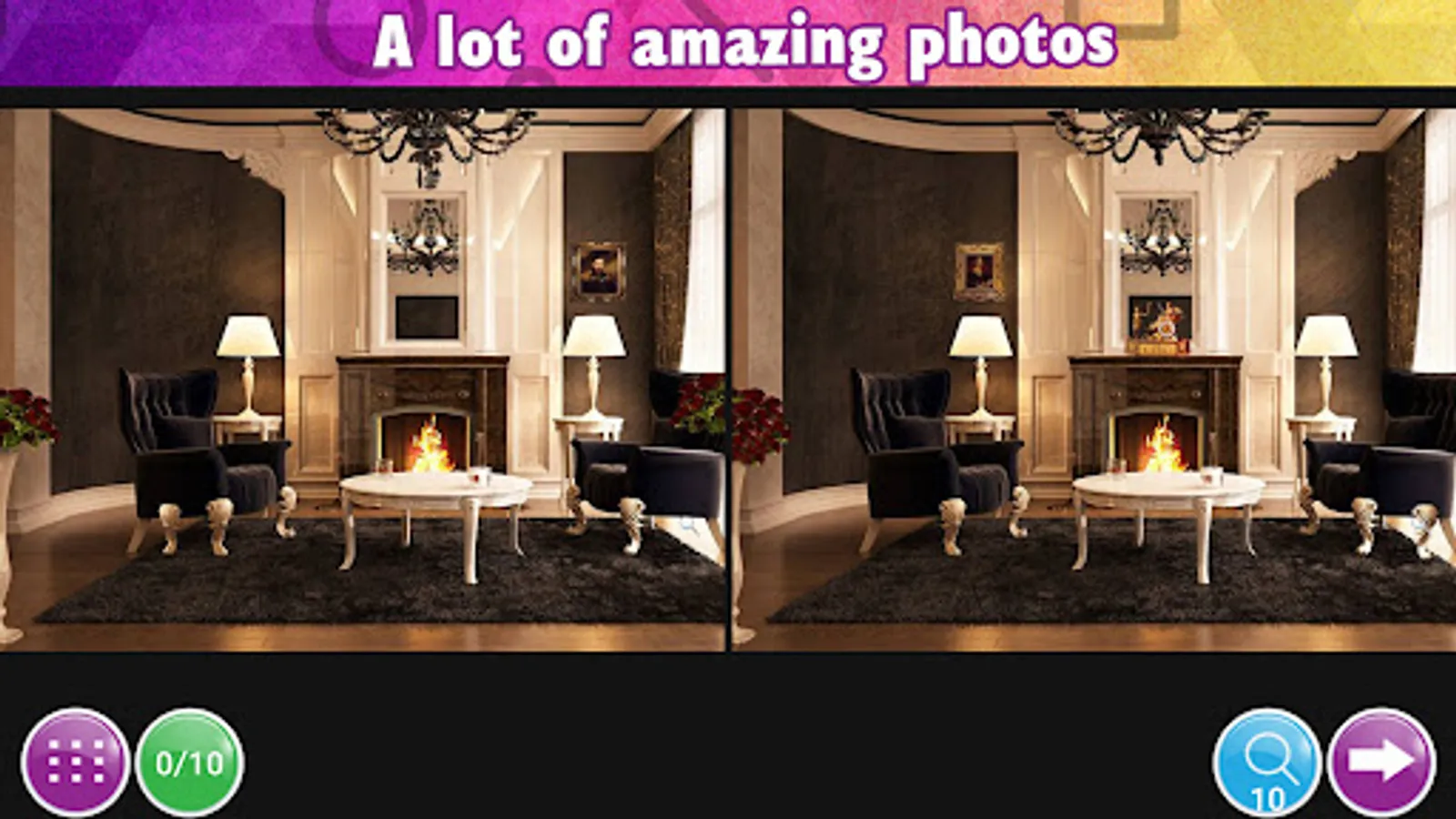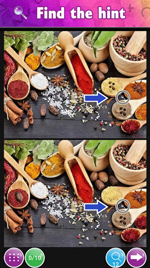 Aaand we have something interesting for you: discover each level and try to find hidden object (hint) - magnifying glass. This hidden object helps you to increase the number of hints and to find image difference.