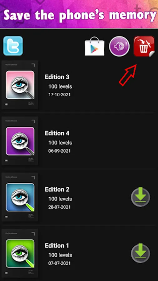 There are many episodes in the game Find the Difference that have different number of differences (5 differences or 10 differences). If you have completed an episode, you can delete it from your phone to free up space on your phone's memory.