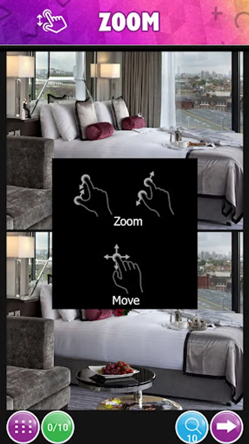 • find all differences and get 2 hint at the end of each level
