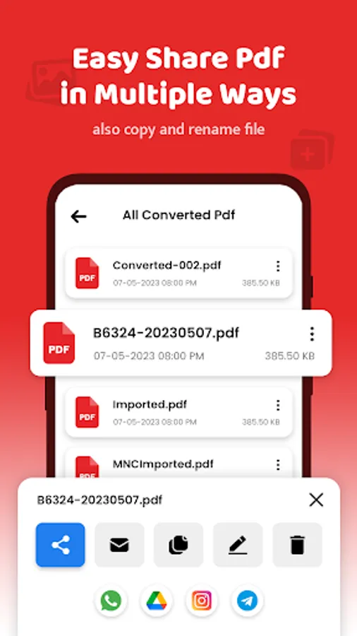 👉 Easily send and share converted PDF files via social media, Bluetooth, Email, quick share, etc.