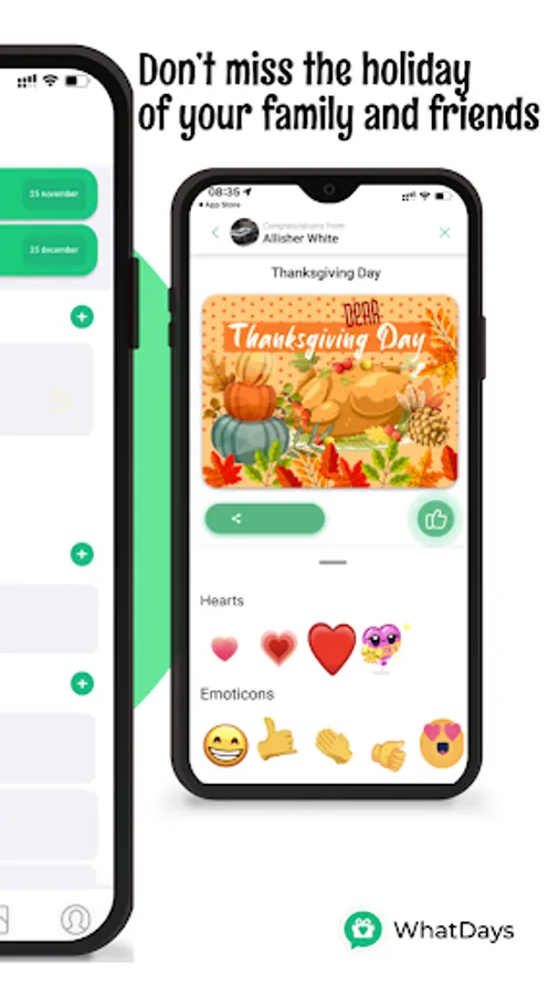 It’s easy and you can totally do it on the run! Simply pick a card and choose who you’re going to send it to. If the contact you’re trying to reach hasn’t installed WhatDays yet, they will receive an invitation to join our community. You can also share this link via messenger.
