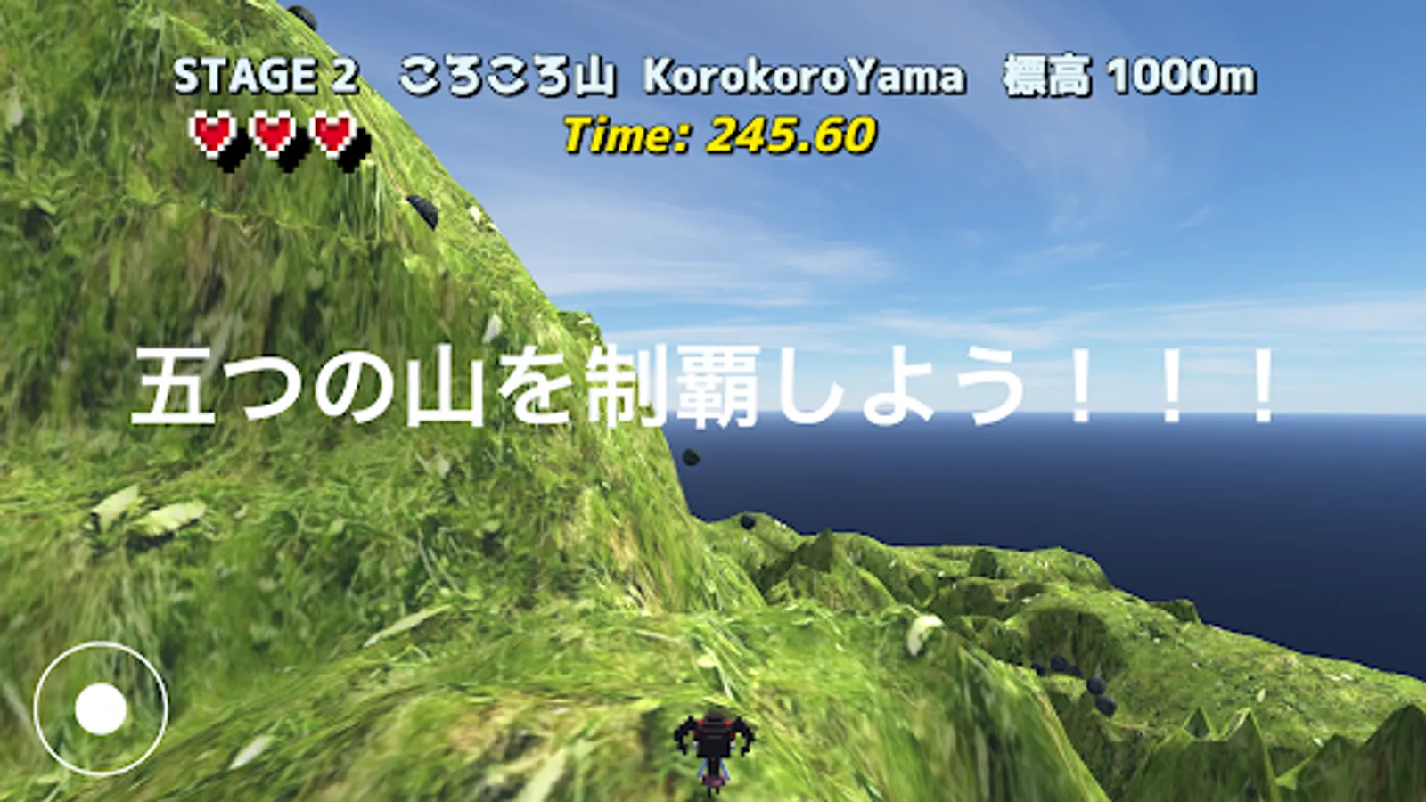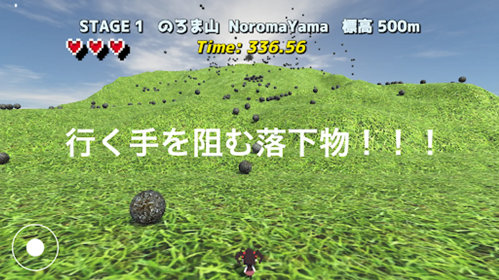 主人公の女の子を仮想ジョイスティックで操作して五つの山の頂上を目指そう!!!