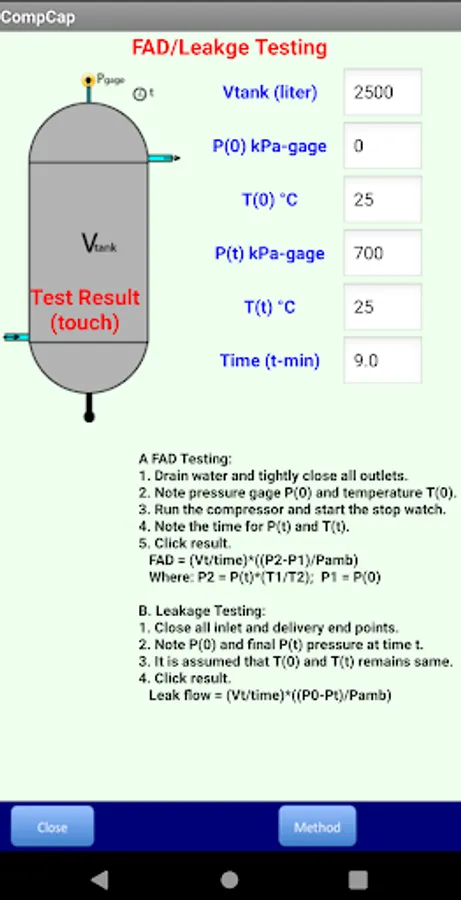As the compressor put more hours on service, the natural wear and tear could bring down the performance of any compressor. Therefore, it is often necessary to run tests to determine its capacity and also any excess leakage in the compressed air system. This app helps to run quick tests to estimate the losses and concern for any further investigation.