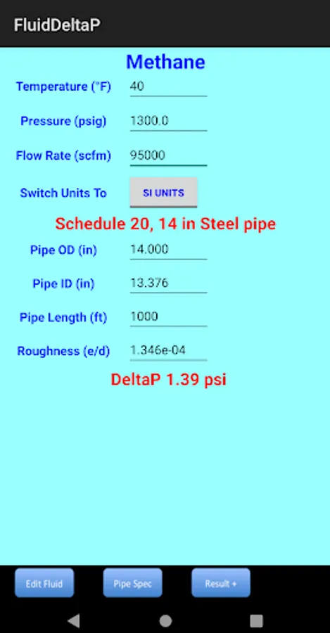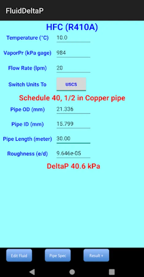 This app computes energy loss involved in transmission of fluids for industrial applications. Users can pick from a list of fifteen most common fluids, pipe schedules and sizes with different material of construction to determine overall pressure loss. A judicious selection of pipe size is often a trade off between initial cost and subsequent energy cost involved in transmission of fluid from one point to another. Therefore, the app can be a helpful tool for practicing engineers and designers in analyzing different matrix.