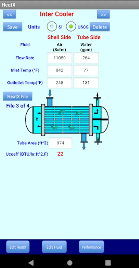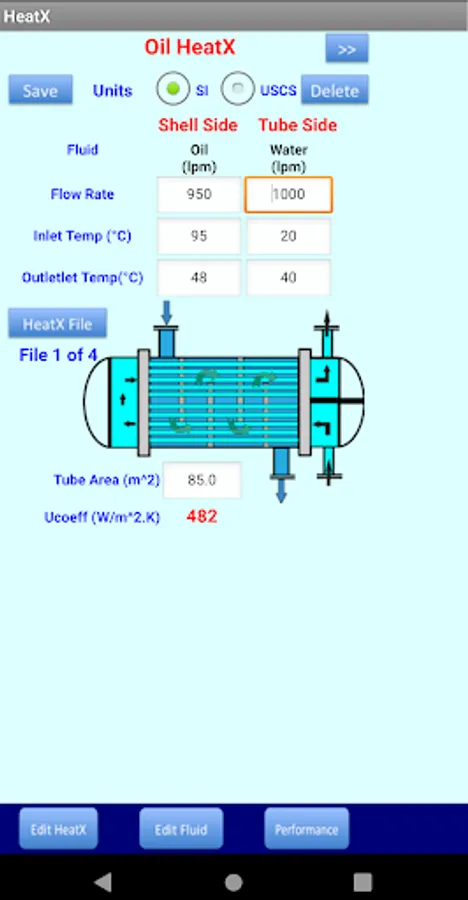 Manufacturers generally provide design specification data such as heat transfer Area, U-coefficient, effectiveness for a given capacity performance. However, these values tend to vary over a period of time and often it is necessary to evaluate and compare design specification data with actual performance. This app serves as a tool for different maintenance personnel, energy and application engineers in monitoring performance and energy efficiency in a shell and tube heat exchanger.