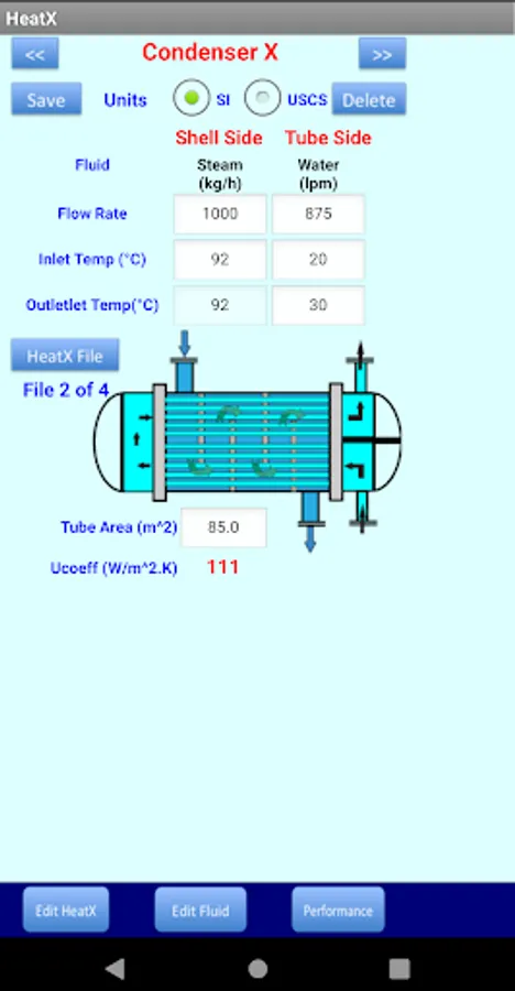 HeatX (Heat Exchanger) App is developed mainly to evaluate performance in a shell and tube heat exchanger in terms of its over all heat transfer U-coefficient. It also helps in determining different maintenance requirement based on change in its performance characteristics due to degradation. In this version, users can save multiple heat exchanger data in a file and can be loaded is as and when needed for reference and monitoring purpose.