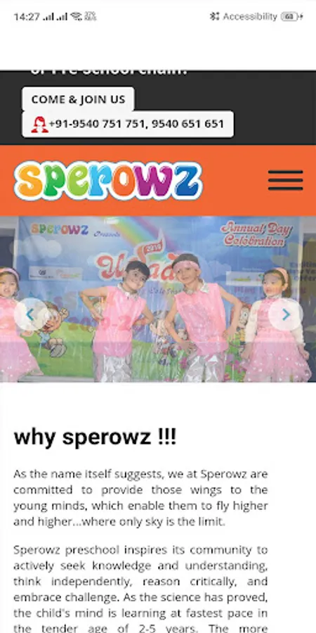 Sperowz preschool inspires its community to actively seek knowledge and understanding, think independently, reason critically, and embrace challenge. As the science has proved, the child's mind is learning at fastest pace in the tender age of 2-5 years. The more opportunities they are exposed to during this period, greater their capacity to learn and discover their unique abilities.