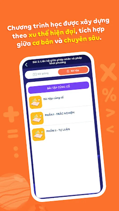 + BGD standard math: is divided into 4 classes from grade 6 to grade 9 according to the current Math program of the Ministry of Education.