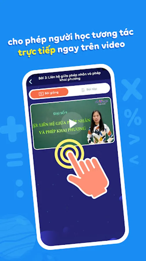 + The modern video lecture system allows learners to interact directly on the video, do interactive exercises right on the teacher's video lecture.