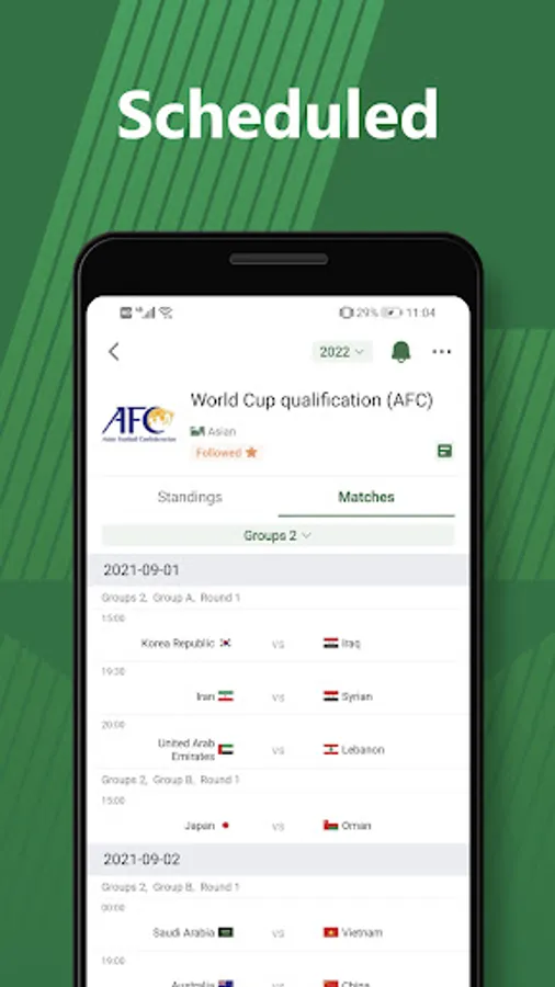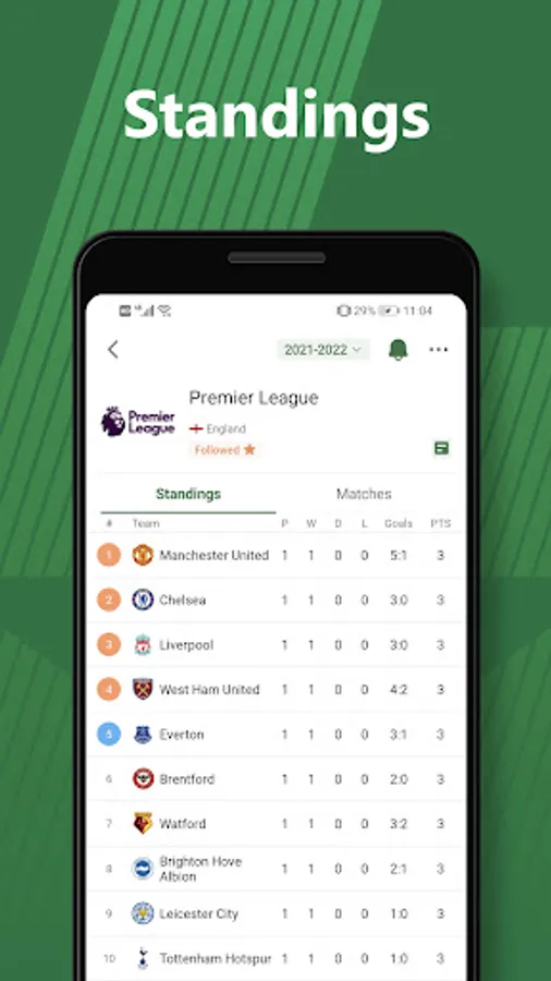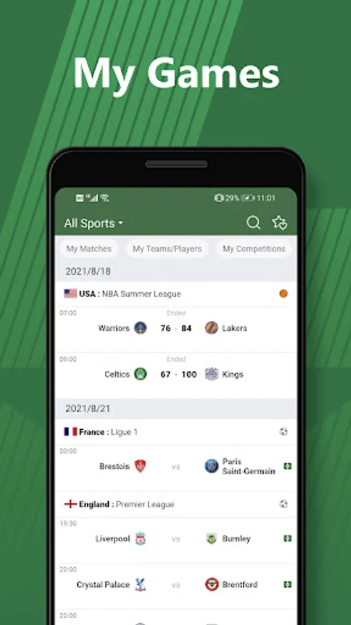 Any competitions, teams, players and matches that you care about can be followed and get real-time event notifications.