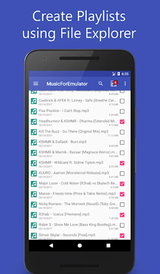 Playlist Creator will save the playlist on your device and will immediately appear in the Music Player. The playlist which you have created can be used in all common music players! You can create Playlists with a File Explorer or using the Music Library.