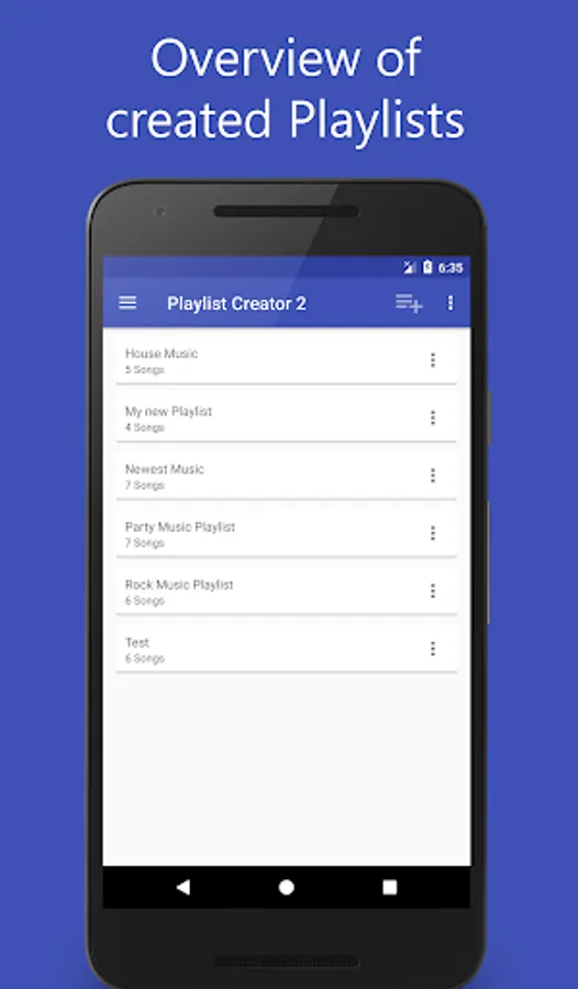 Playlist Creator searches all music tracks and existing playlists automatically on your device. The advantage: you don't have to select any folders or libraries on your phone!