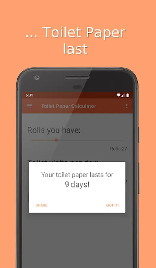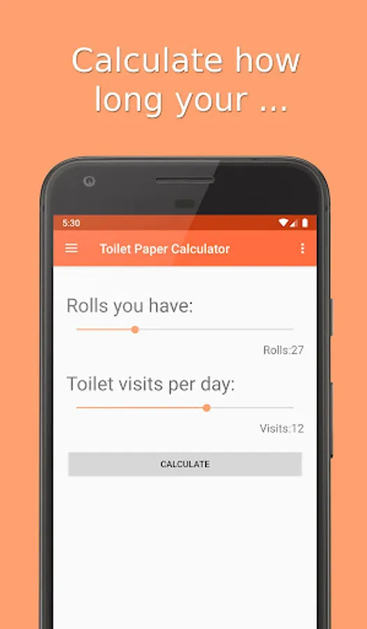 With two sliders you can define how you many toilet paper rolls are left and how many toilet visits you have each day.