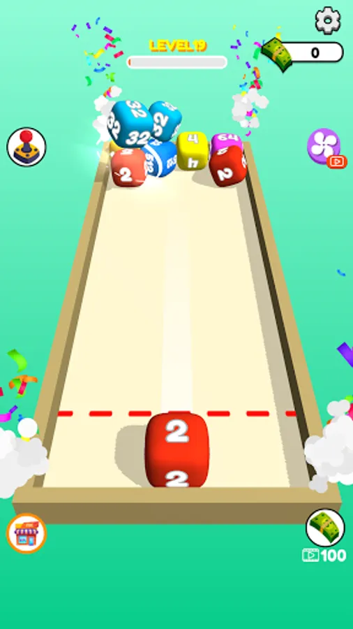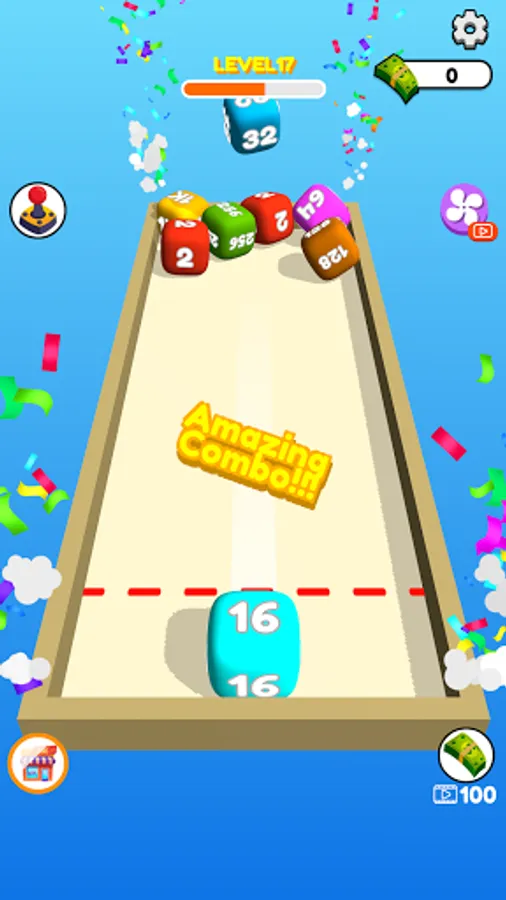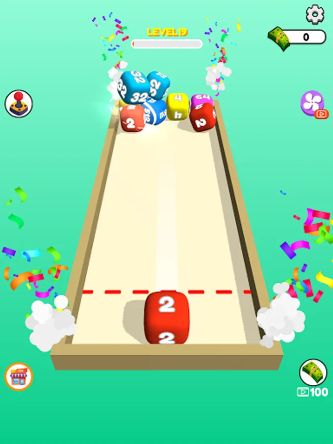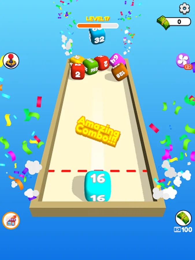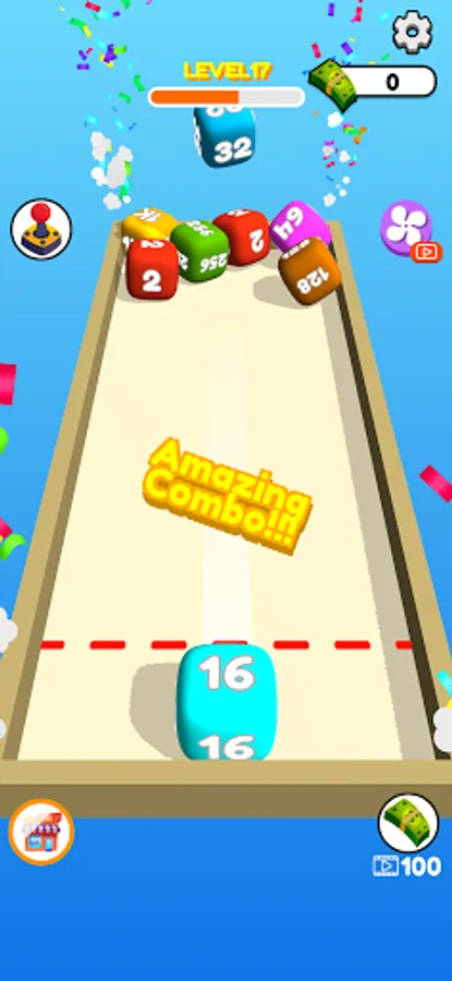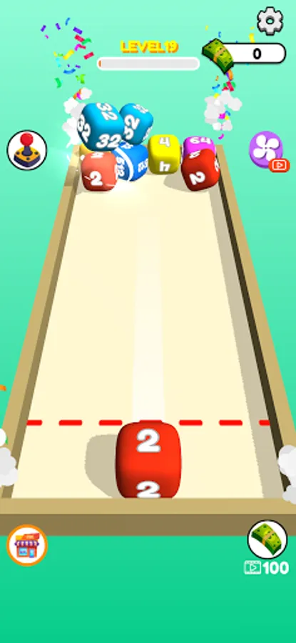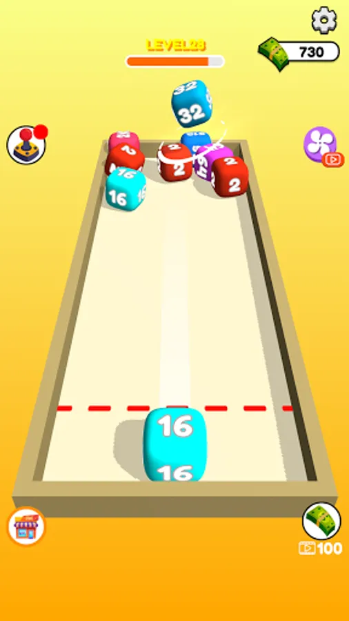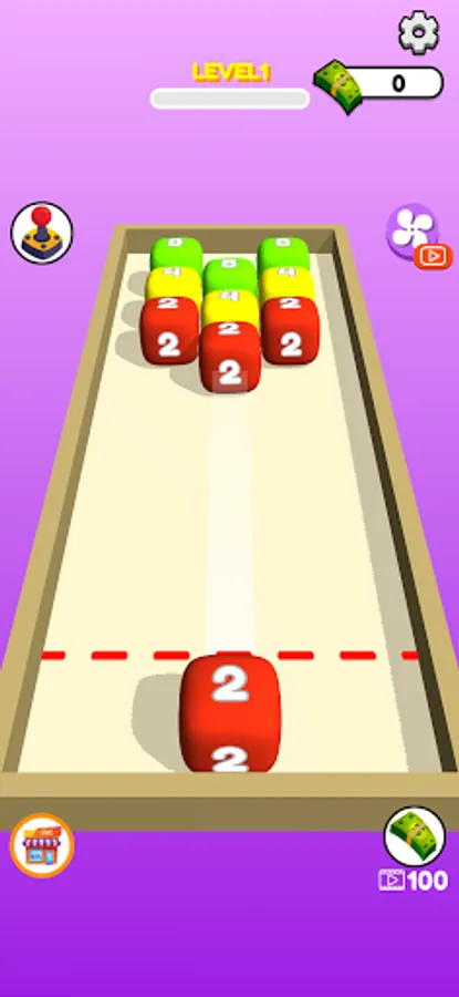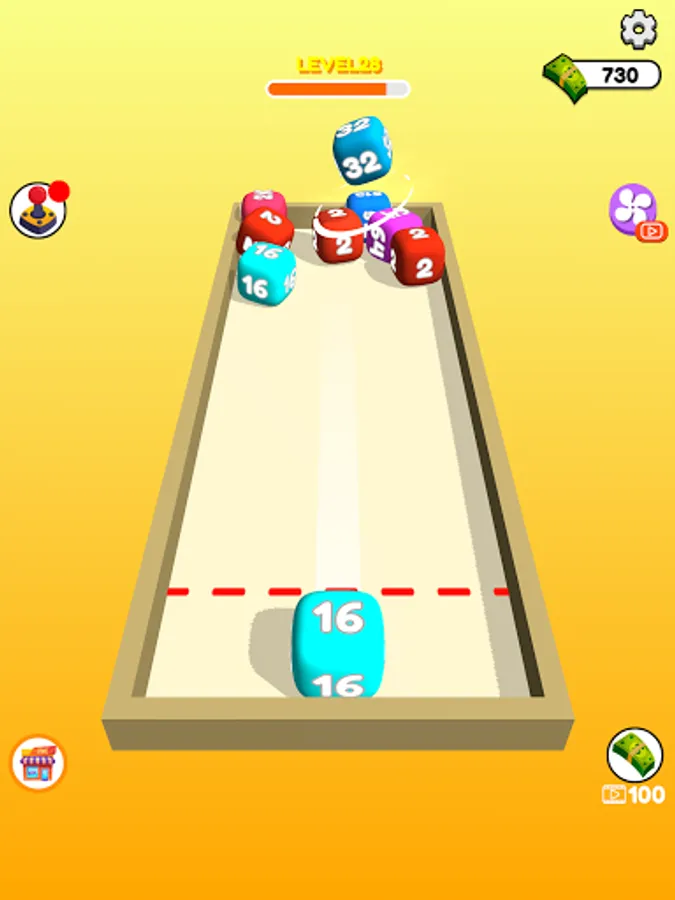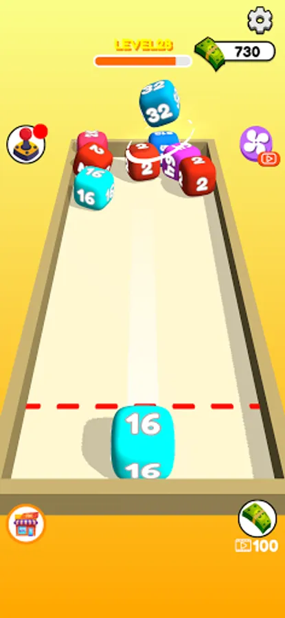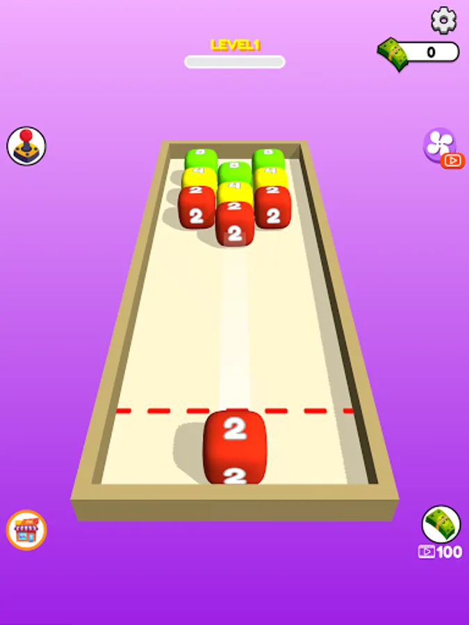 Swipe to shoot and merge same number cubes.