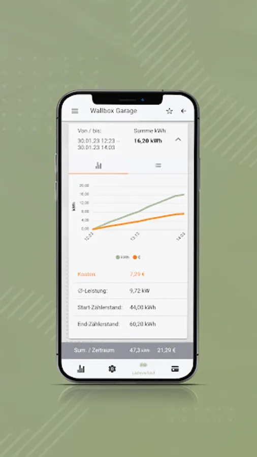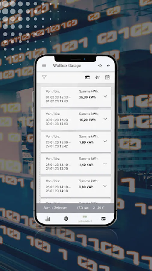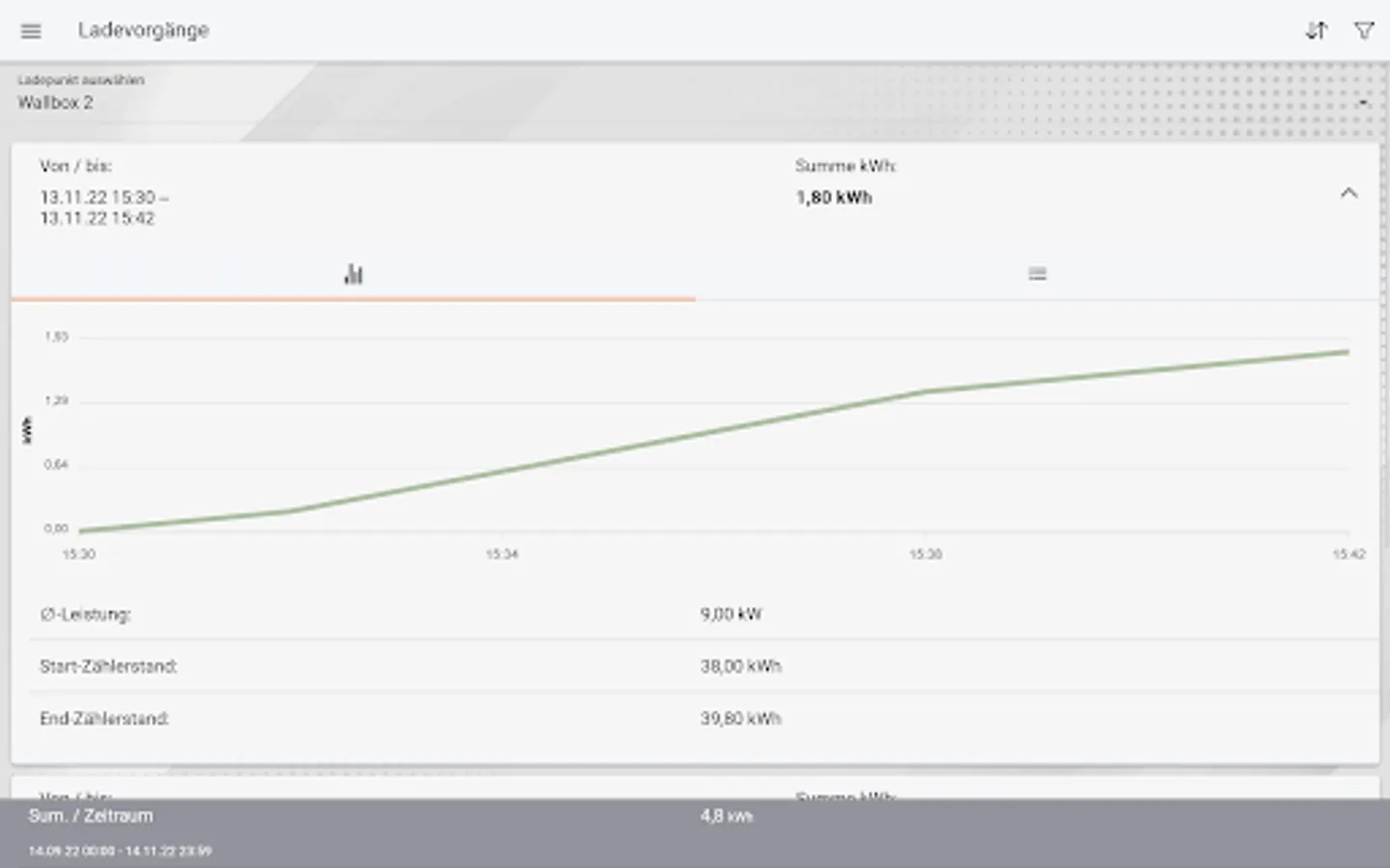 Of course, you will not only find all current values and diagrams in the app. The completed charging processes can also be viewed in the history.
