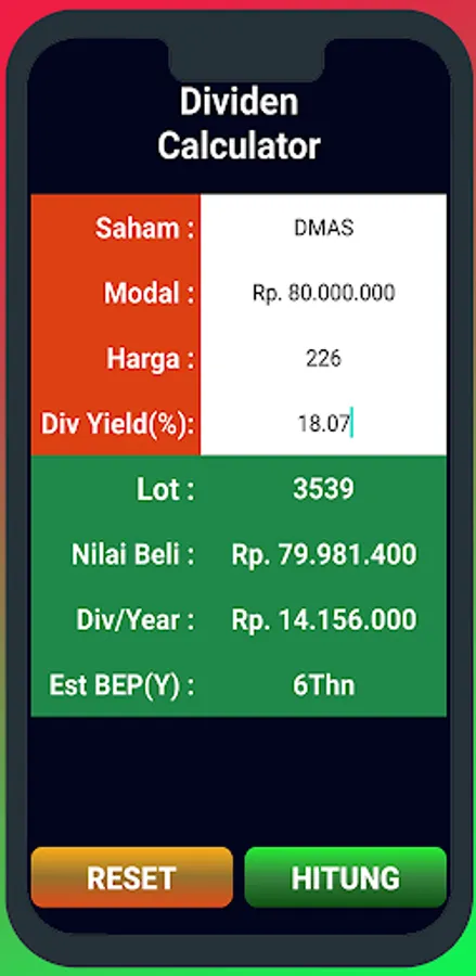 3. Dividend Calculator - for Dividend Hunter, this tool can calculate when your capital will be BEP (Turnover).
