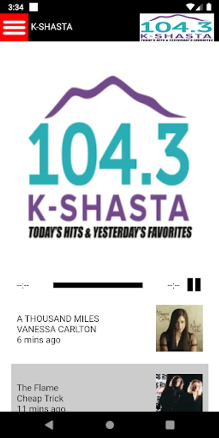 104.3 K-SHASTA is your home for Today's Hits and Yesterday's Favorites! We play your favorites. Download our official app, it's free, and never be without your favorites. Stream Don & Heather and you will get access to all our videos, podcasts, contests, and tons of cool stuff. -See the current song played and the history of all the songs we played. - Get Lyrics for every song Concert recommendations Learn all about your favorite artists, plus their social feeds Never be without your favorite radio station, listen at work, home or on the road."