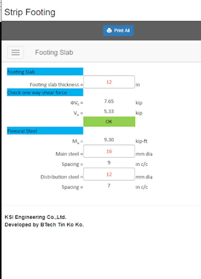 Calculations are based on ACI 318-05 and MNBC and FPS Unit.
