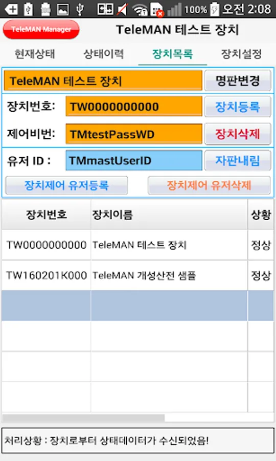( 테스트 장치는 공용 아이디를 사용하므로 항상 최종 조작자에게 권한이 넘어감)