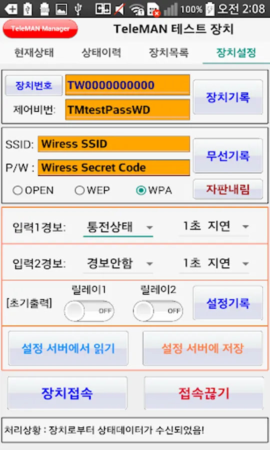 [주] 본 앱을 내려 받으시면, 다른 설정 없이 개성산전 연구실에 있는 테스트 장치를 제어해