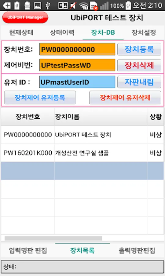 ( 테스트 장치는 공용 아이디를 사용하므로 항상 최종 조작자에게 권한이 넘어감)