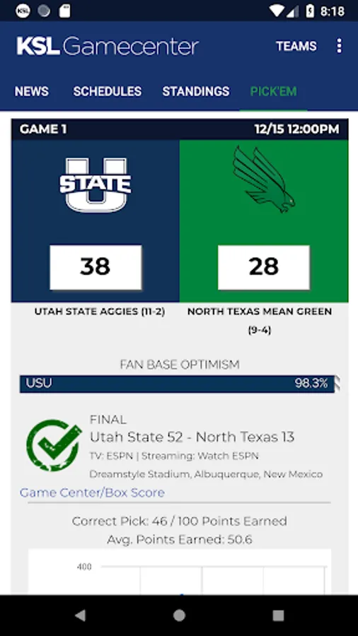 KSL Gamecenter is your mobile lifeline for local football, basketball, and soccer coverage. You can see the latest news, game schedules, and live score updates for college and professional teams in Utah. Also includes access to KSL College Football Pick'em right from the app.