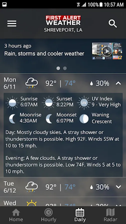 The KSLA Mobile Weather App includes: