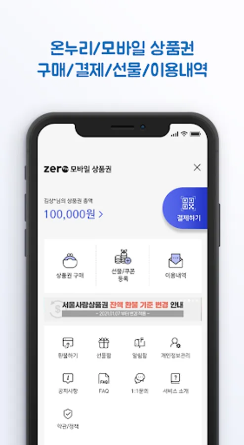- Zero Pay Mobile Gift Certificate: Local Love Gift Certificate, Onnuri Gift Certificate, Seoul Love Gift Certificate, etc.