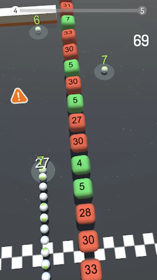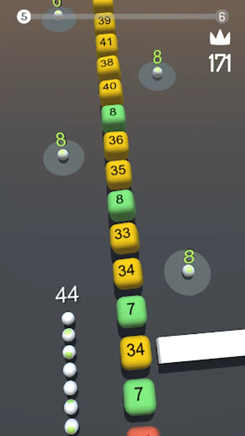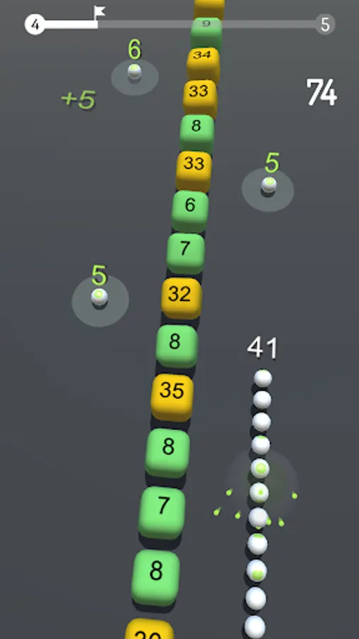 * Swipe your finger on the screen to move snake of balls and break the bricks