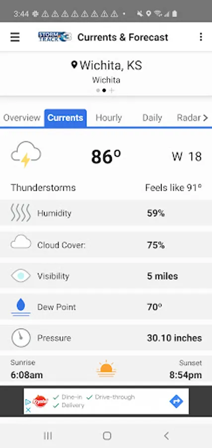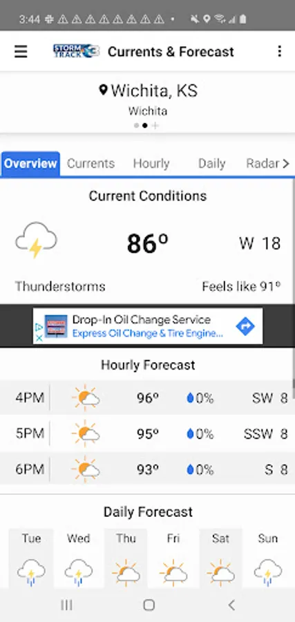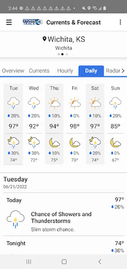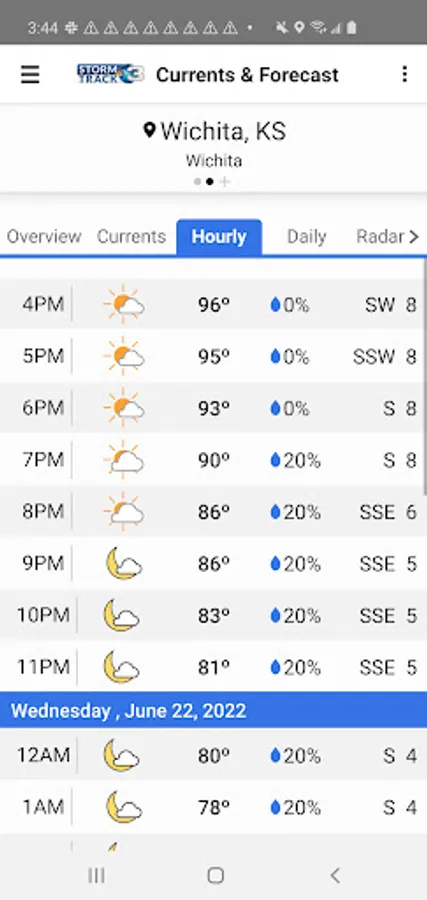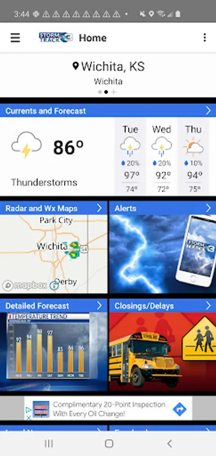 Never let the weather catch you by surprise again. The trusted weather experts at Storm Tracker 3 deliver Kansas' most accurate hour-by-hour forecast for the next day and for the week ahead. Unlike other weather apps, you'll get a local forecast that is customized for you. Download the Storm Tracker 3 app for fast, accurate local and national weather at your fingertips. With its personal alert notifications, you'll know when significant weather is heading your way and when to take cover. And when you are traveling, use Storm Tracker 3 to get real-time weather forecasts, interactive radar and current conditions for anywhere in the U.S. The Storm Tracker 3 app utilizes the most advanced radar maps, weather and digital technology available. With its easy to use interactive radar, you can take control and see where the storm is now and where it is tracking. Then, set customized alerts to keep you and your family informed and safe. Features: - Live interactive radar with many layering options lets you track the storms around you - Alerts for severe weather go to your home screen and cue an audio alert - The most accurate hour-by-hour forecast for the next day and week ahead for Kansas - The latest video forecast from Storm Tracker 3 - Current weather conditions for Wichita, all of Kansas, and anywhere in the United States - Share the weather conditions via text message, email, Facebook or Twitter - You can set multiple custom locations to track forecasts, alerts, radar, and more - Closings and delays for Kansas - Weather blog from Threat Tracker - Live streaming video from KSN-TV